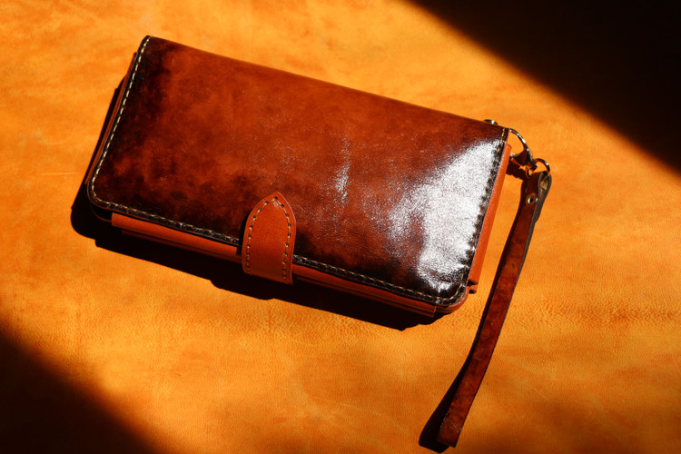 جزئیات: دست دوز،دوخته شده با نخ ابریشم،دو جای اسکناس،یک جای گوشی،چهارده جای کارت،یک زیپ برای سکه و فلش
