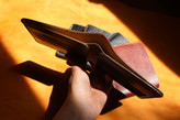 دوحته شده با چرم گاوی .دستدوز.10جی کارت دارد.1جای اسکناس