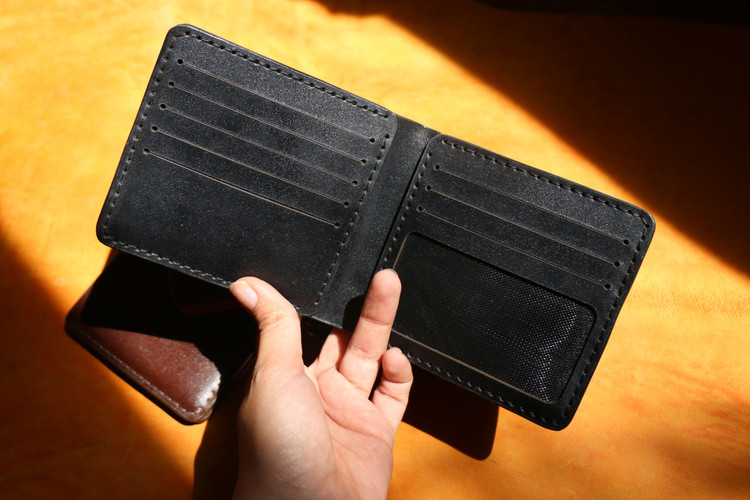 جزئیات: دوحته شده با چرم گاوی .دستدوز.10جی کارت دارد.1جای اسکناس