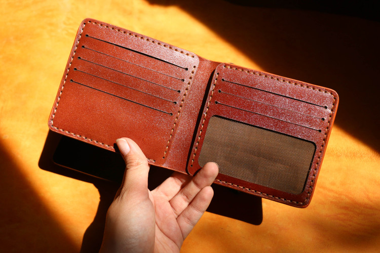 دوحته شده با چرم گاوی .دستدوز.10جی کارت دارد.1جای اسکناس