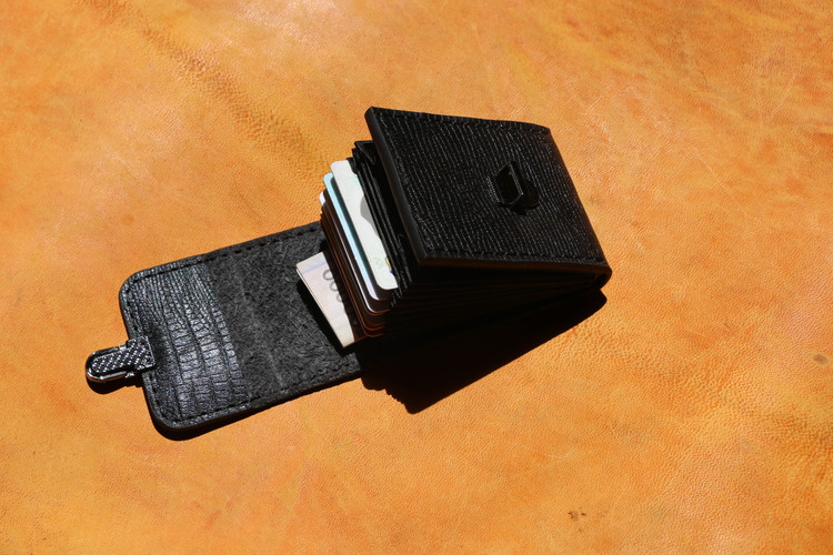 جزئیات: دوخته شده از چرم گاوی .دستدوز . دارای پرداخت لبه . امکان جایگذاری 11 تا8 کارت . دارای قفل