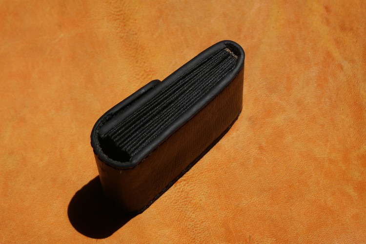 دوخته شده از چرم گاوی .دستدوز . دارای پرداخت لبه . امکان جایگذاری 11 تا8 کارت . دارای قفل