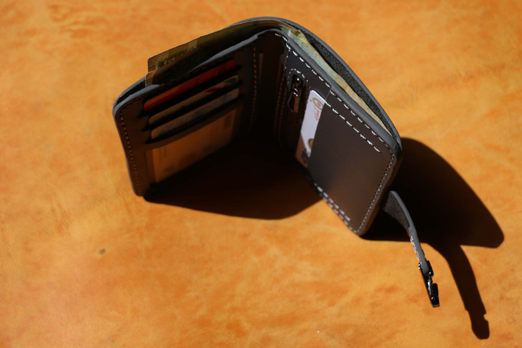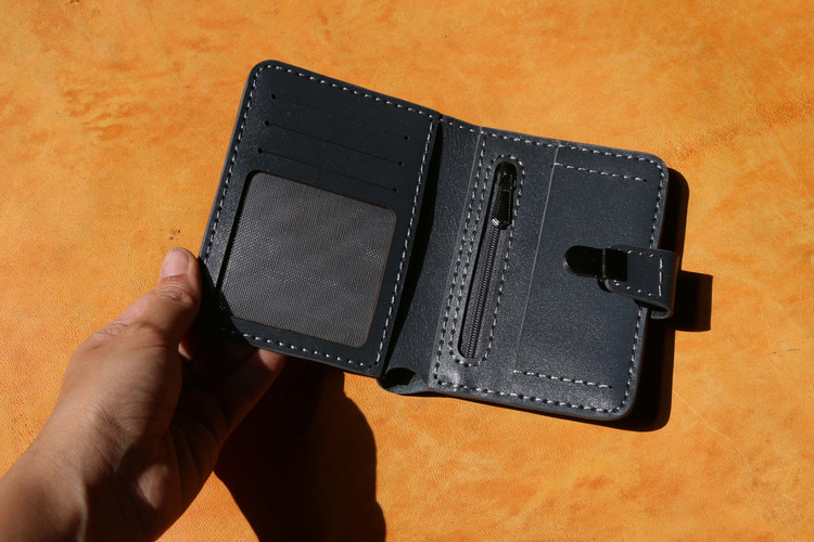دوخته شده با نخ ابریشم .دارای پرداخت لبه .امکان گذاشتن 6کارت عابر مجزا .یک زیپ برای سکه وفلش . سک جای اسکناس . باز وبسته شدن توسط قفل انجام میشه.