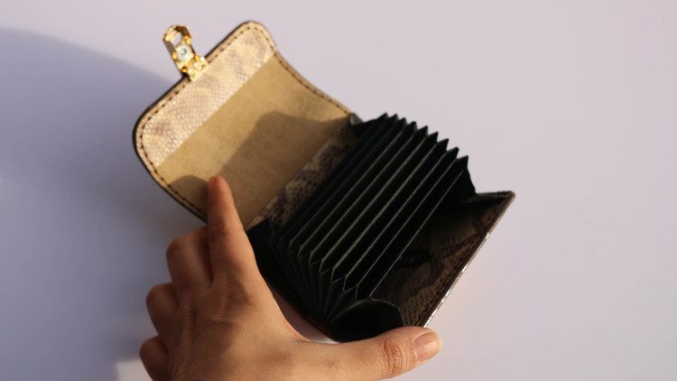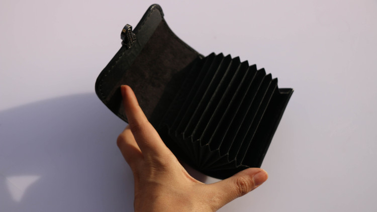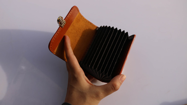 دست دوز،دوخته شده با نخ ابریشم،دارای پرداخت لبه،امکان جاگذاری 9تا11 کارت و پول به صورت تاشده